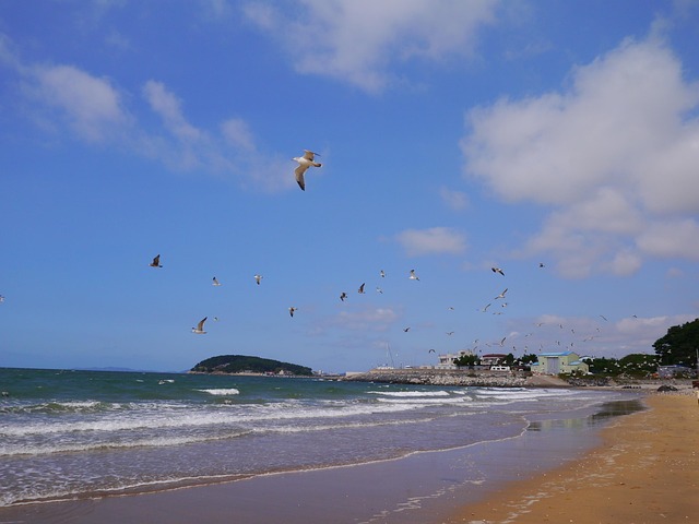 - 바다가 넓고 수심이 완만한 해변